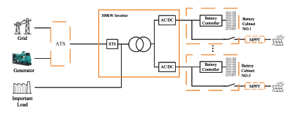Χαρακτηριστικό Το σύστημα χρησιμοποιεί αρθρωτές μονάδες μετατροπέα σε παράλληλη διαμόρφωση, όπου η είσοδος DC κάθε μονάδας μετατροπέα αντιστοιχεί σε μια ειδική θήκη μπαταρίας, επιτρέποντας τη διαχείριση ανά συστάδα να εξαλείψει τα κυκλοφορούντα ρεύματα μεταξύ χορδές μπαταρίας. Οι μονάδες ισχύος AC/DC υποστηρίζουν ευέλικτη ανάπτυξη τόσο σε ποσότητα όσο και σε ονομαστική ισχύς, με μέγιστη χωρητικότητα μονάδων 60 kW σε παράλληλο 5 μονάδων διαμόρφωση. Η έξοδος AC από τις μονάδες ισχύος παρέχεται μέσω ενός μετασχηματιστή απομονωμένη βαθμίδα εξόδου, που παρέχει ισχύ στο φορτίο με ισχυρή αντίσταση τρέχον σοκ. Το υβριδικό ESS χρησιμοποιεί φωτοβολταϊκή ολοκλήρωση με σύζευξη DC, επιτυγχάνοντας υψηλή αποδοτικότητα μετατροπής ενέργειας και βελτιστοποιημένη για σενάρια εκτός δικτύου με Φ/Β Δυνατότητα παραγωγής που υπερβαίνει τη ζήτηση φορτίου· Ελεγκτές MPPT με αξιολόγηση εξωτερικού χώρου ενσωματώστε τις λειτουργίες συνδυασμού και MPPT σε ένα ενιαίο σκληρυμένο περίβλημα. Το πλήρες σύστημα περιλαμβάνει μια επιλογή γεννήτριας ντίζελ ATS, μια υβριδική 300 kW μετατροπέας, ελεγκτής PV MPPT και σύστημα αποθήκευσης ενέργειας μπαταρίας.